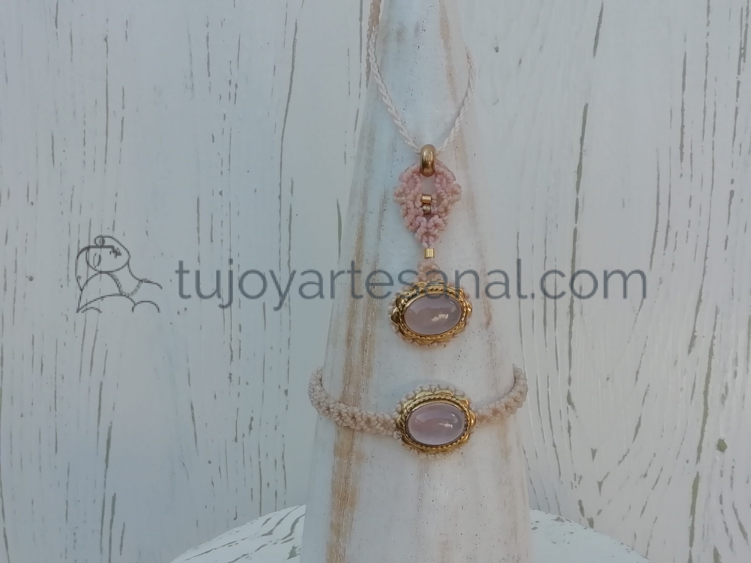 Collar y Pulsera Cuarzo Rosa. Hecho a mano con precisión y calidad. Atrévete a lucir diferente. Atrévete a lucir especial.